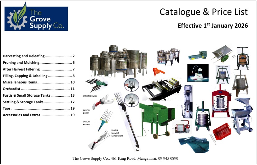 PLEASE NOTE: Our next shipment from Italy is due into the country mid-February. A new catalogue will be available shortly. If you would like information on current prices, please get in touch: info@grovesupply.co.nz