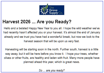 NEWSLETTER: Restocked and ready for harvest 2026, are you ready?
